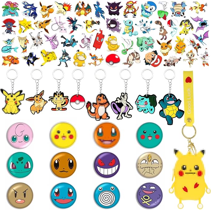 Zestaw Prezentowy Dla Dzieci Anime Naklejki Breloki Przypinki Saszetka 71 el. 🎁✨