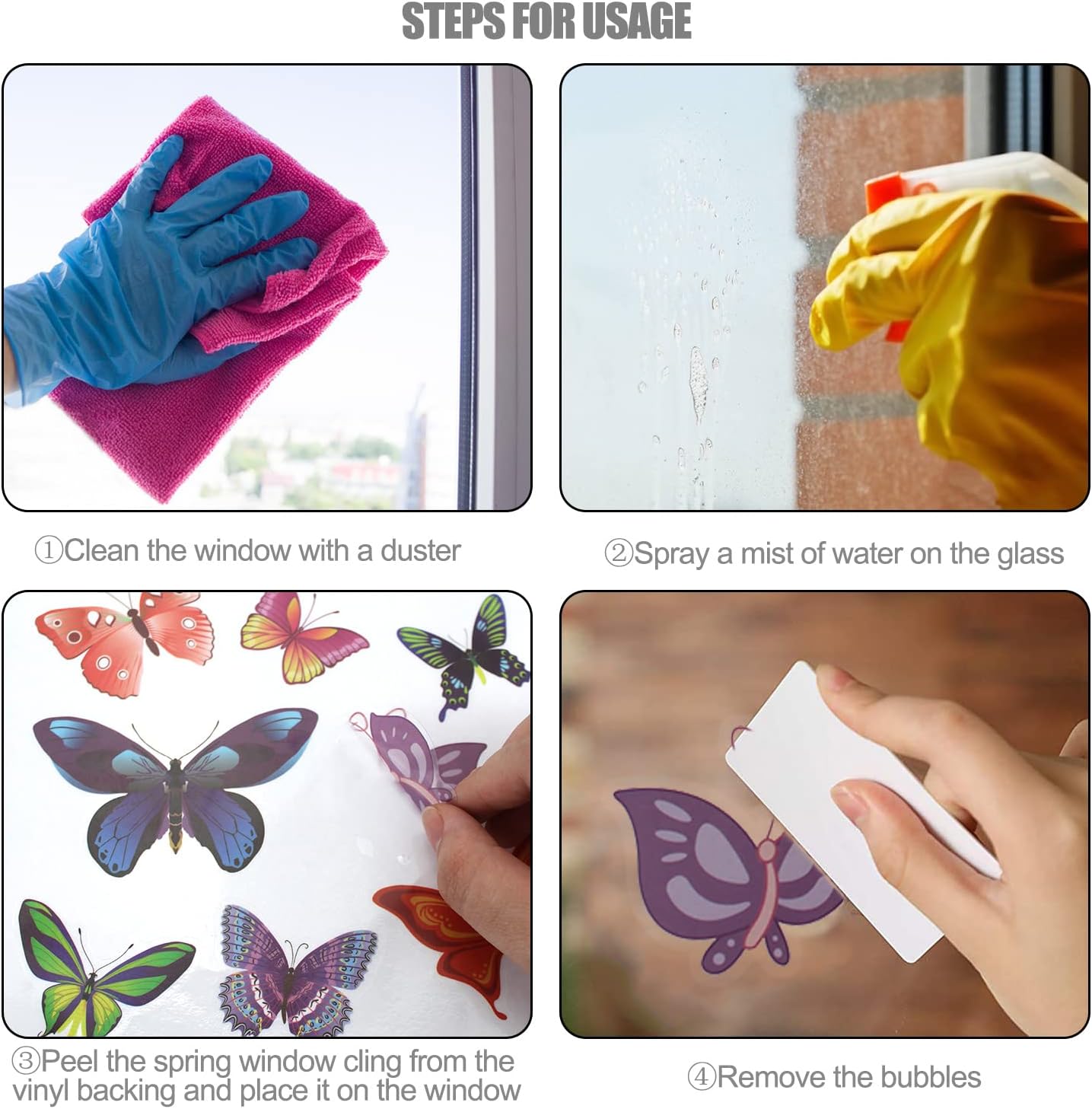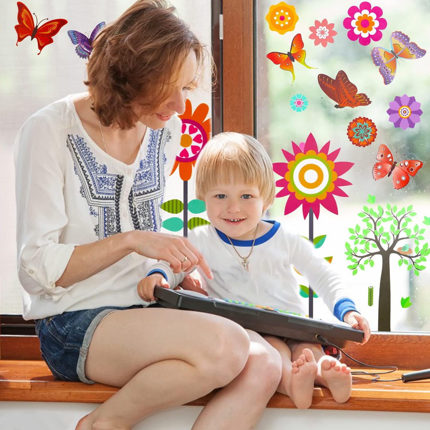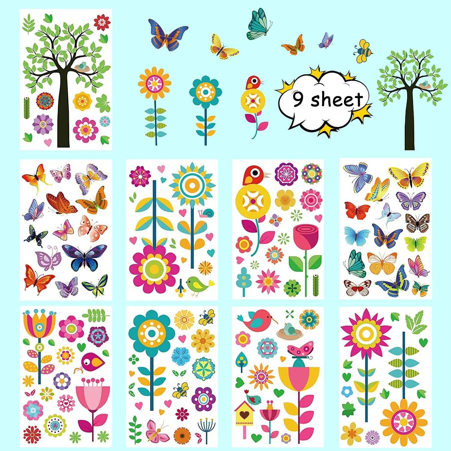 Naklejki okienne wiosenne 9 arkuszy – motywy kwiatów, motyli i drzew 🌸🦋