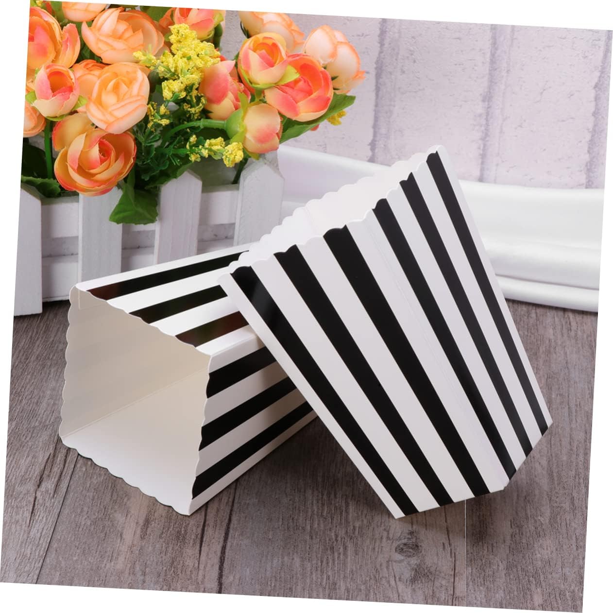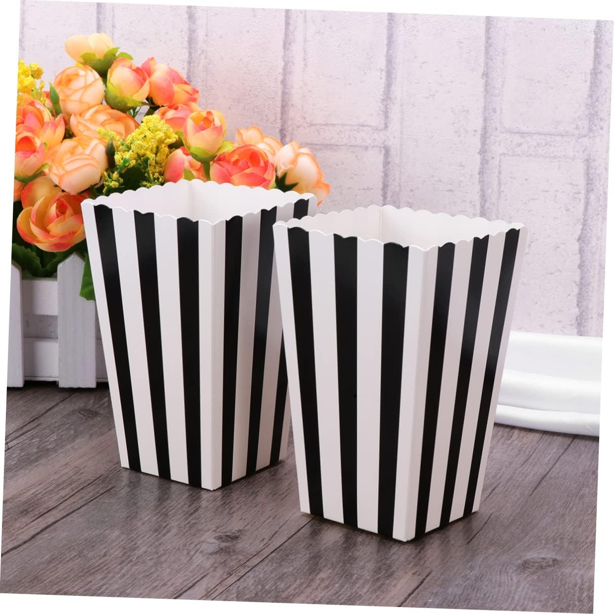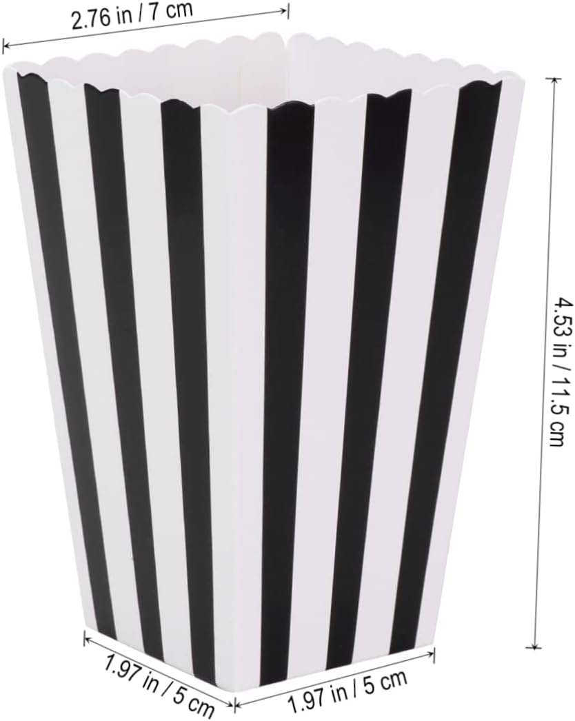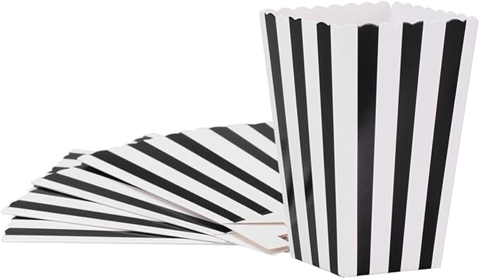 🍿 Pudełka na Popcorn – Czarno-Białe w Paski (24 sztuki)