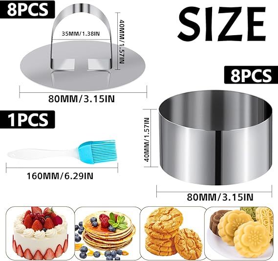 Zestaw Foremek Cukierniczych Stal Nierdzewna Do Ciast Deserów 8 foremek + 1pędzelek 🍰🍳