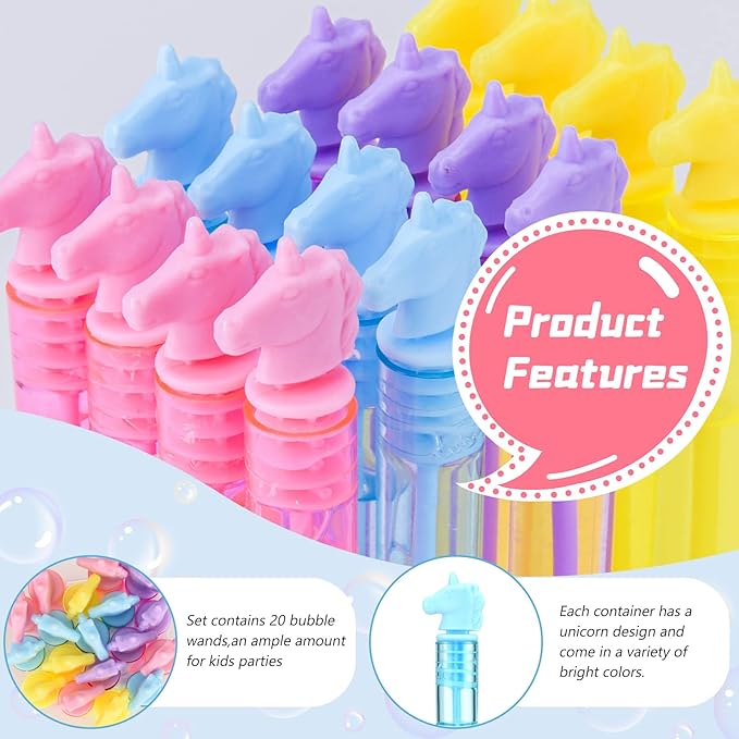 Bańki Mydlane Jednorożec 20szt Zestaw Party Dla Dzieci Kolorowe 🦄🫧🌈
