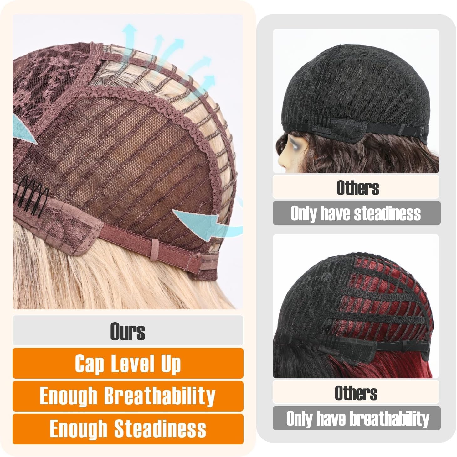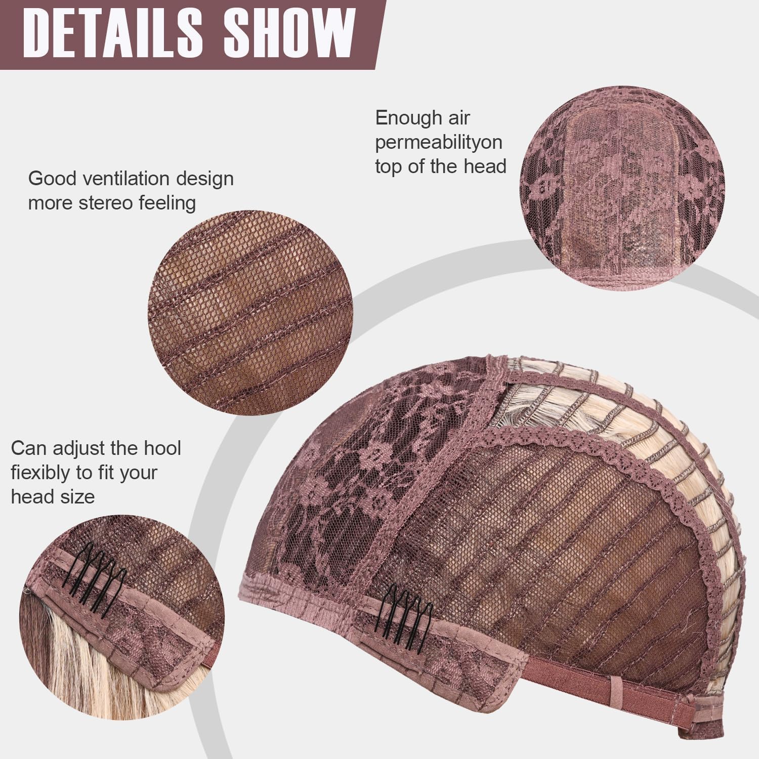 Peruka posiada nowoczesną siateczkową czapeczkę z regulacją, która zapewnia: