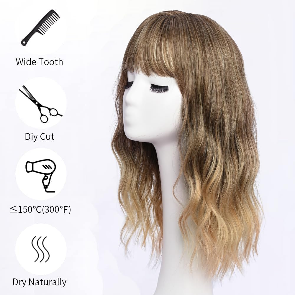 Długa Peruka Naturalny Blond Włosy Długie Za Ramiona z Grzywką Kręcone Ombre