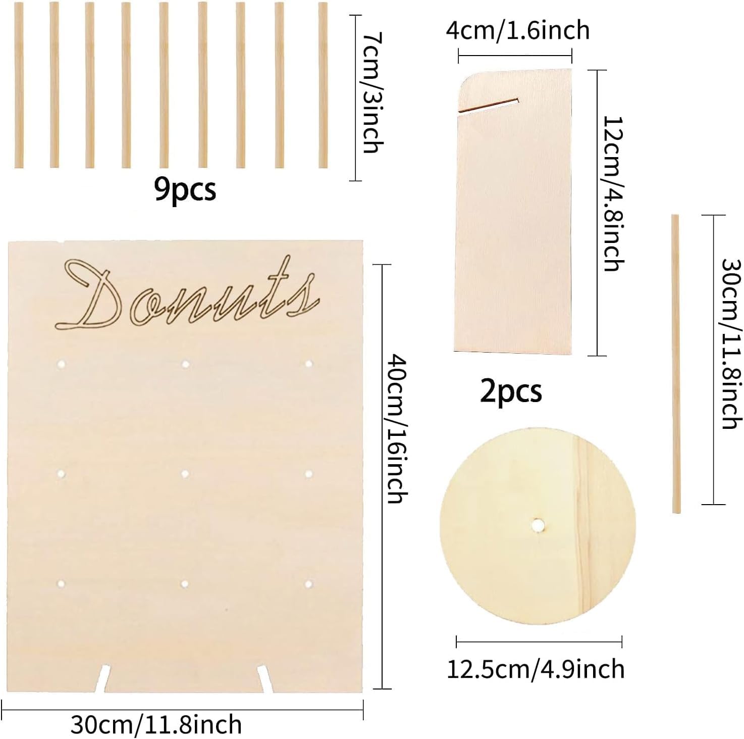 Stojak na donuty z drewna 2w1 – zestaw 4 sztuk dekoracja na imprezy urodziny wesele 🍩🎉