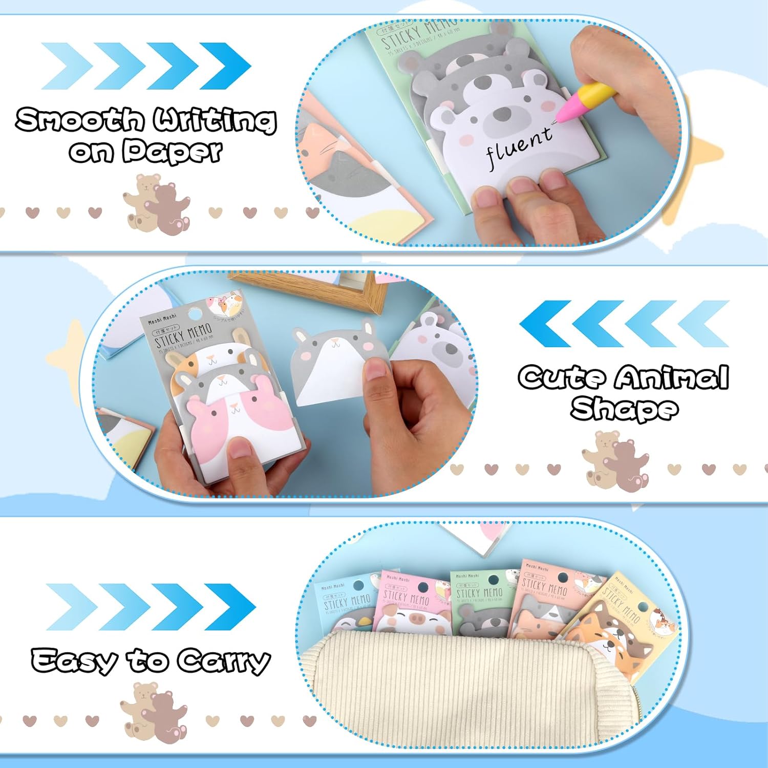 Zestaw 12 uroczych bloczków karteczek samoprzylepnych w kształcie zwierzątek to idealny sposób, by dodać odrobinę radości do codziennych notatek. 🐻🐧🐱