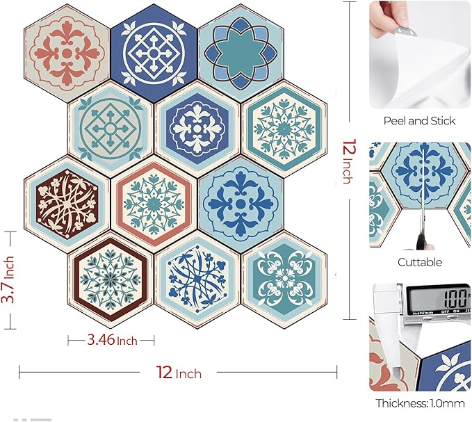 Te naklejki wyglądają jak prawdziwe kafle – heksagonalny kształt, tłoczenia i połysk 3D robią robotę tak dobrze, że nawet teściowa zapyta, kto Ci to kładł.