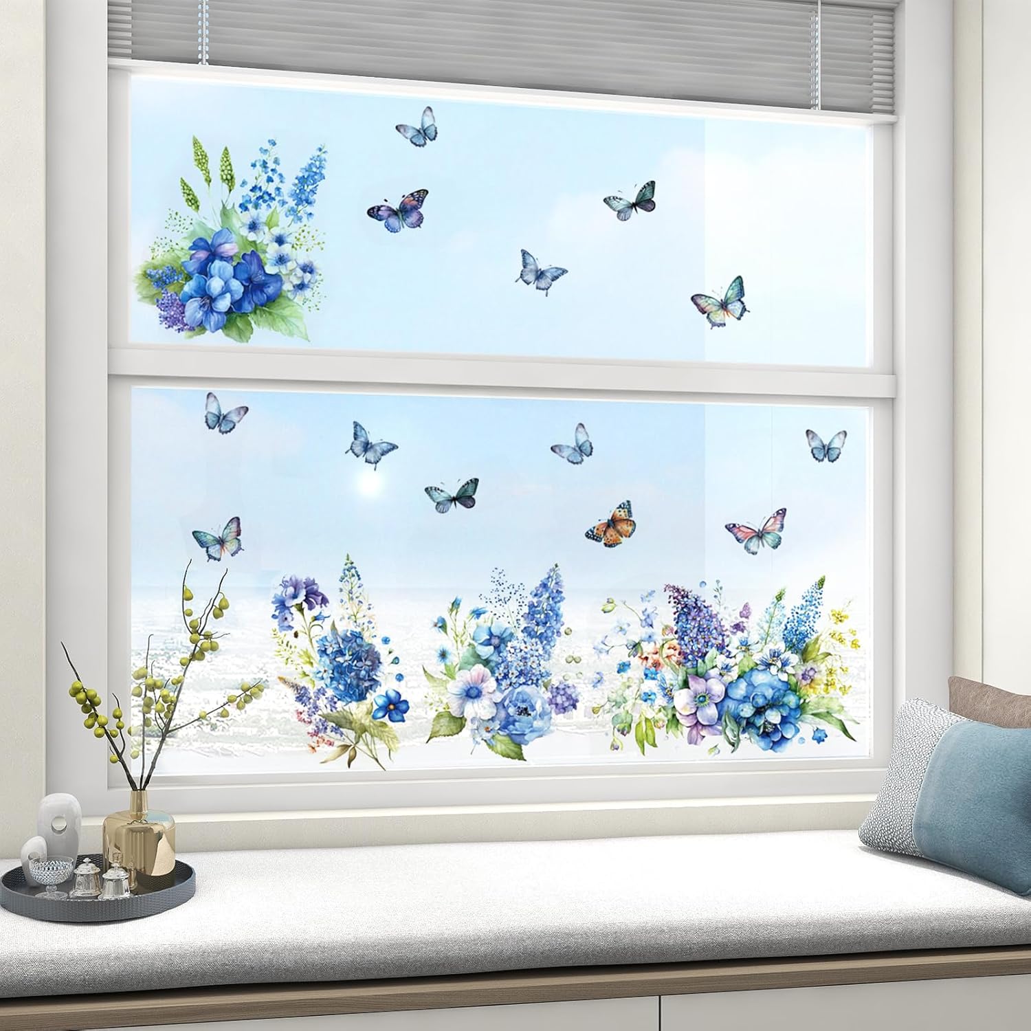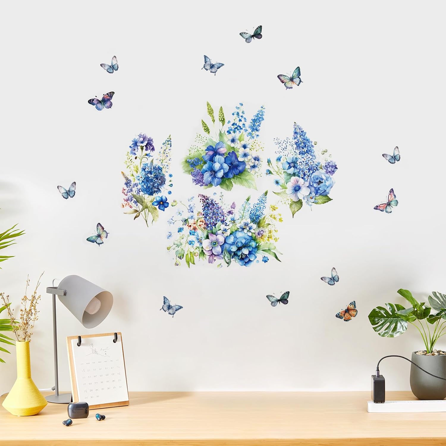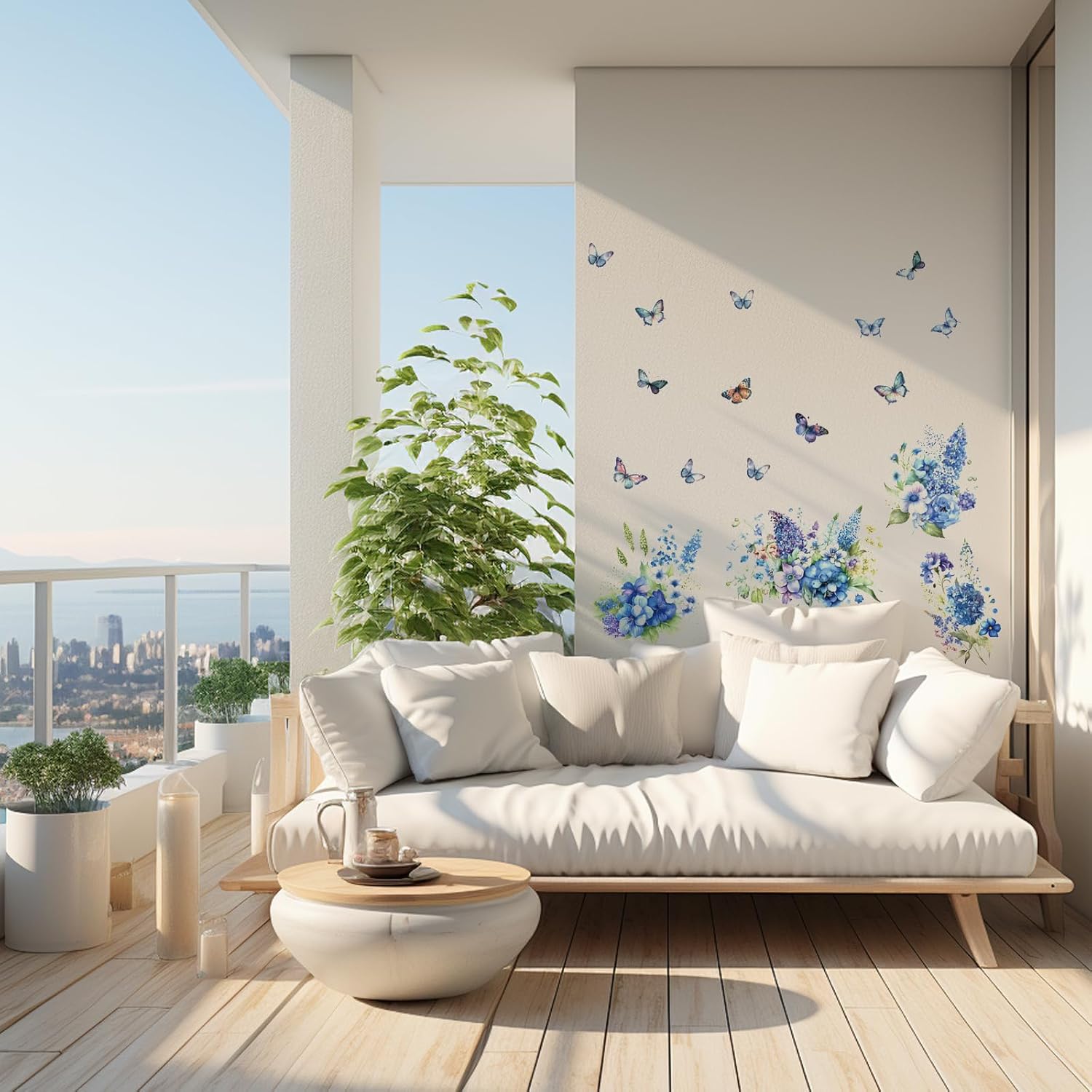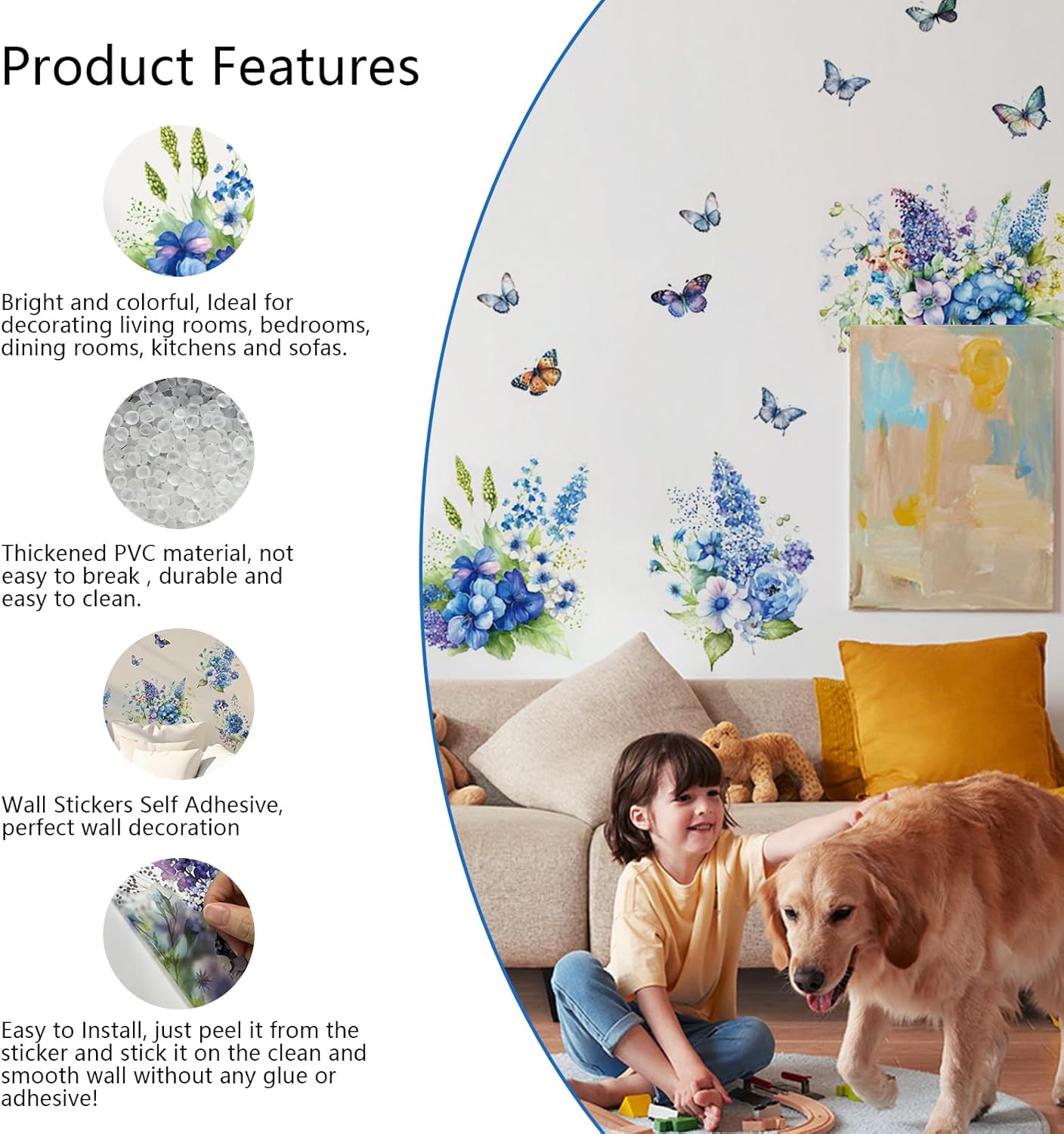 Wprowadź do swojego wnętrza elegancję i lekkość z tym zestawem samoprzylepnych naklejek z delikatnymi motylami i romantycznymi bukietami niebieskich kwiatów. Ten wzór przywodzi na myśl akwarelowy obraz i stworzy relaksującą atmosferę w każdym pomieszczeniu – od salonu po sypialnię.