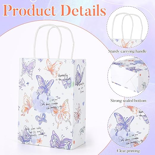 Szukasz sposobu, by każde przyjęcie wyglądało jak bajka? Te kolorowe papierowe torebki z motylkami to hit wśród dzieciaków i organizatorów imprez! W sam raz na słodycze, drobne upominki czy mini zabawki. Wytrzymałe, piękne i gotowe do rozdania w sekundę – niech każde dziecko wyjdzie z imprezy z uśmiechem i torbą w dłoni! 🎁✨