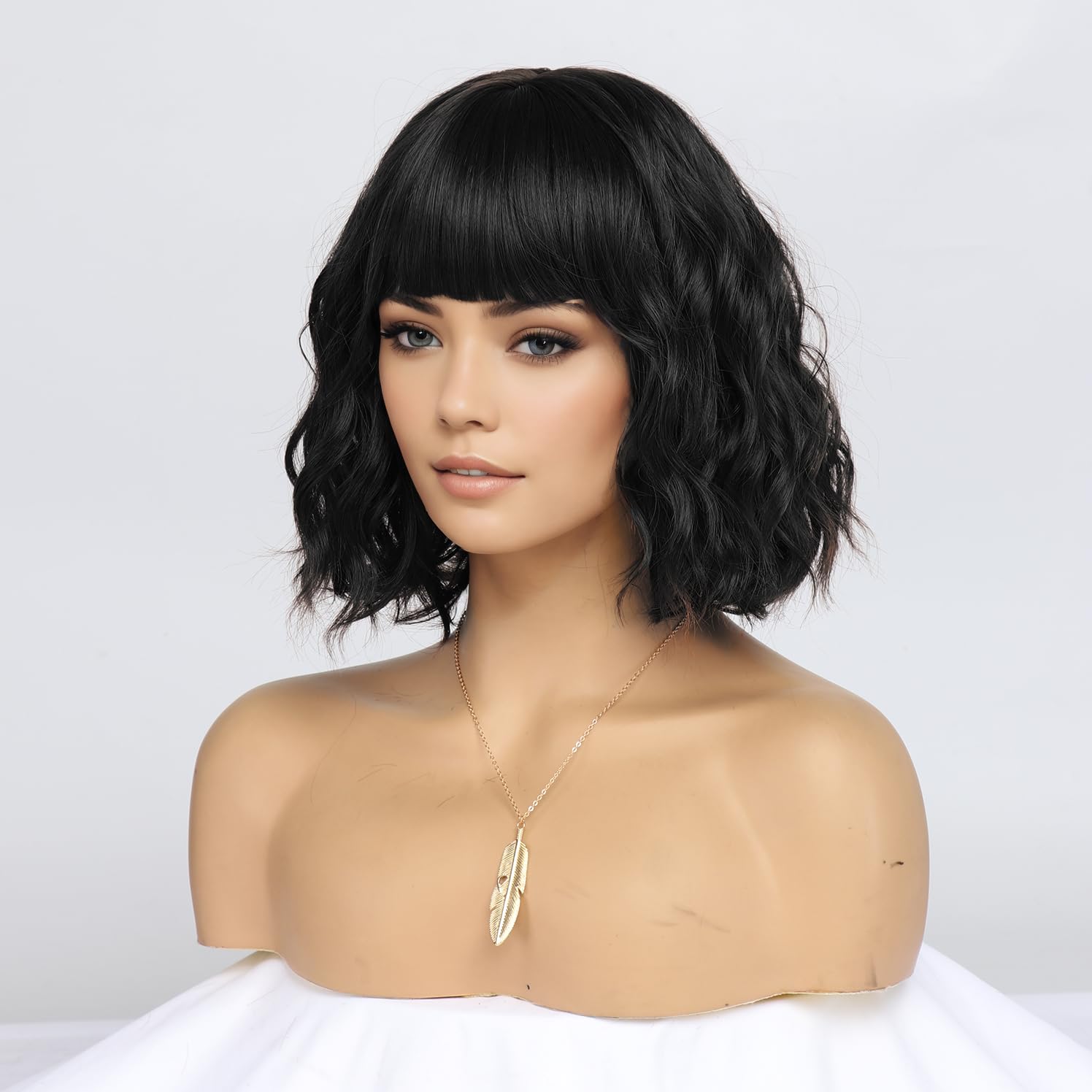 Czarna peruka z grzywką i falami – naturalny look bez fryzjera!