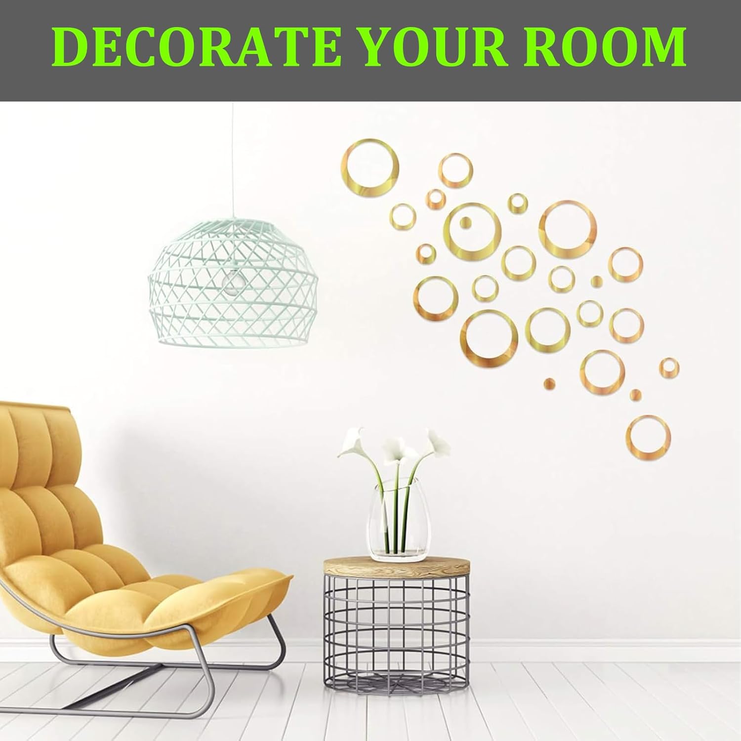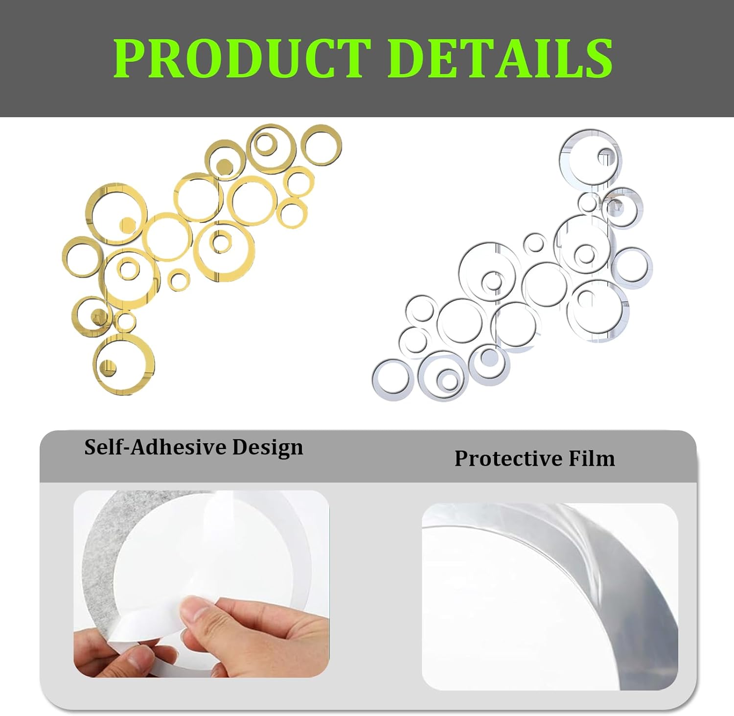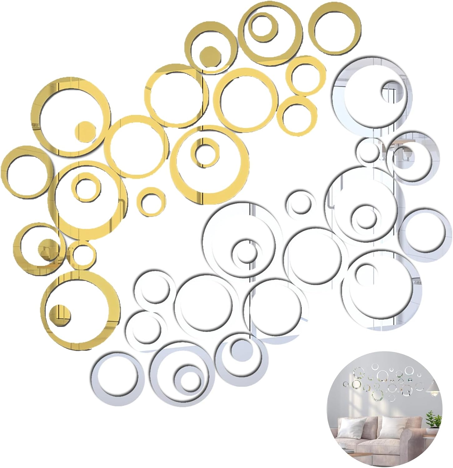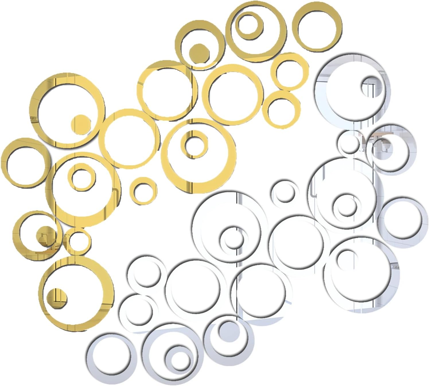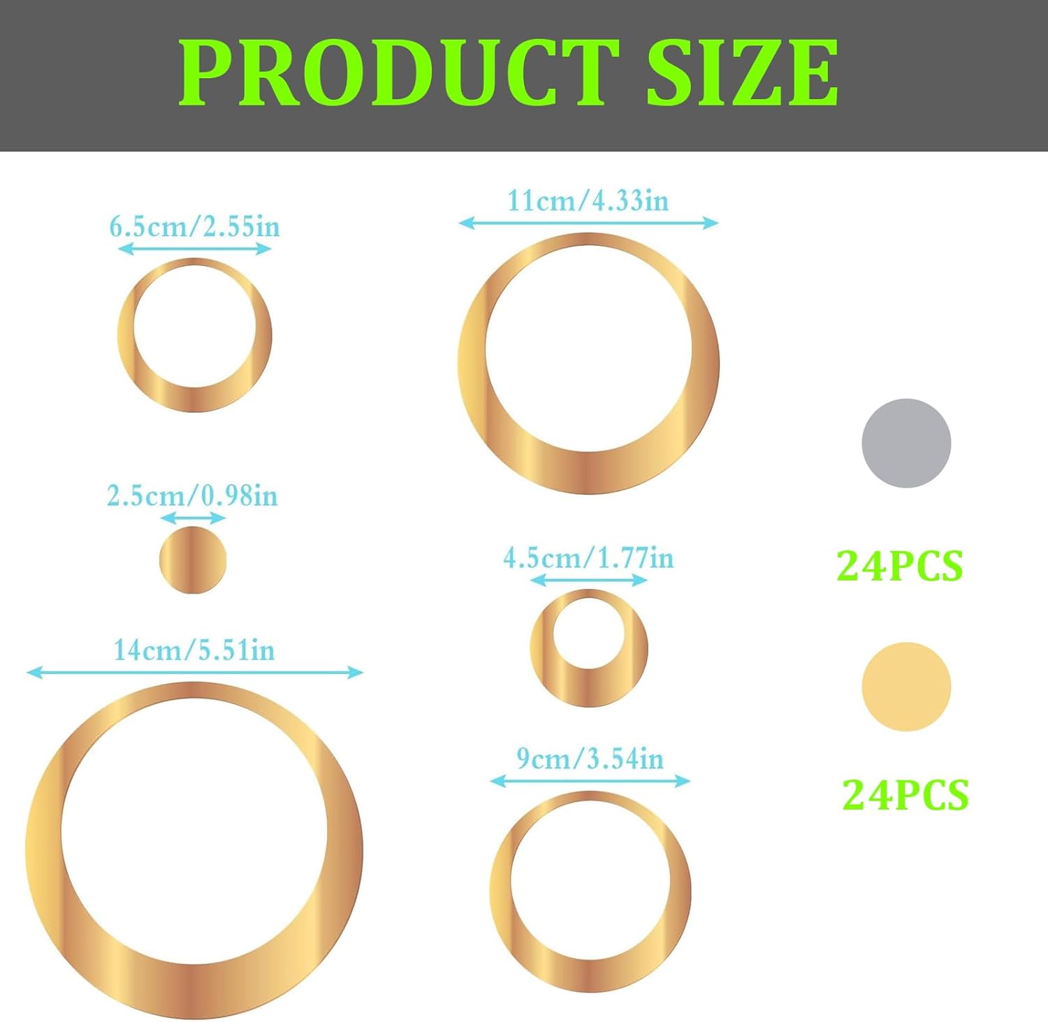 Dekoracyjne naklejki lustra 3D okręgi złote i srebrne – zestaw 48 szt. samoprzylepny
