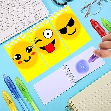 Zestaw Notesów UV Emoji + Magiczne Długopisy 8szt Świecące Sekretne 😄✨