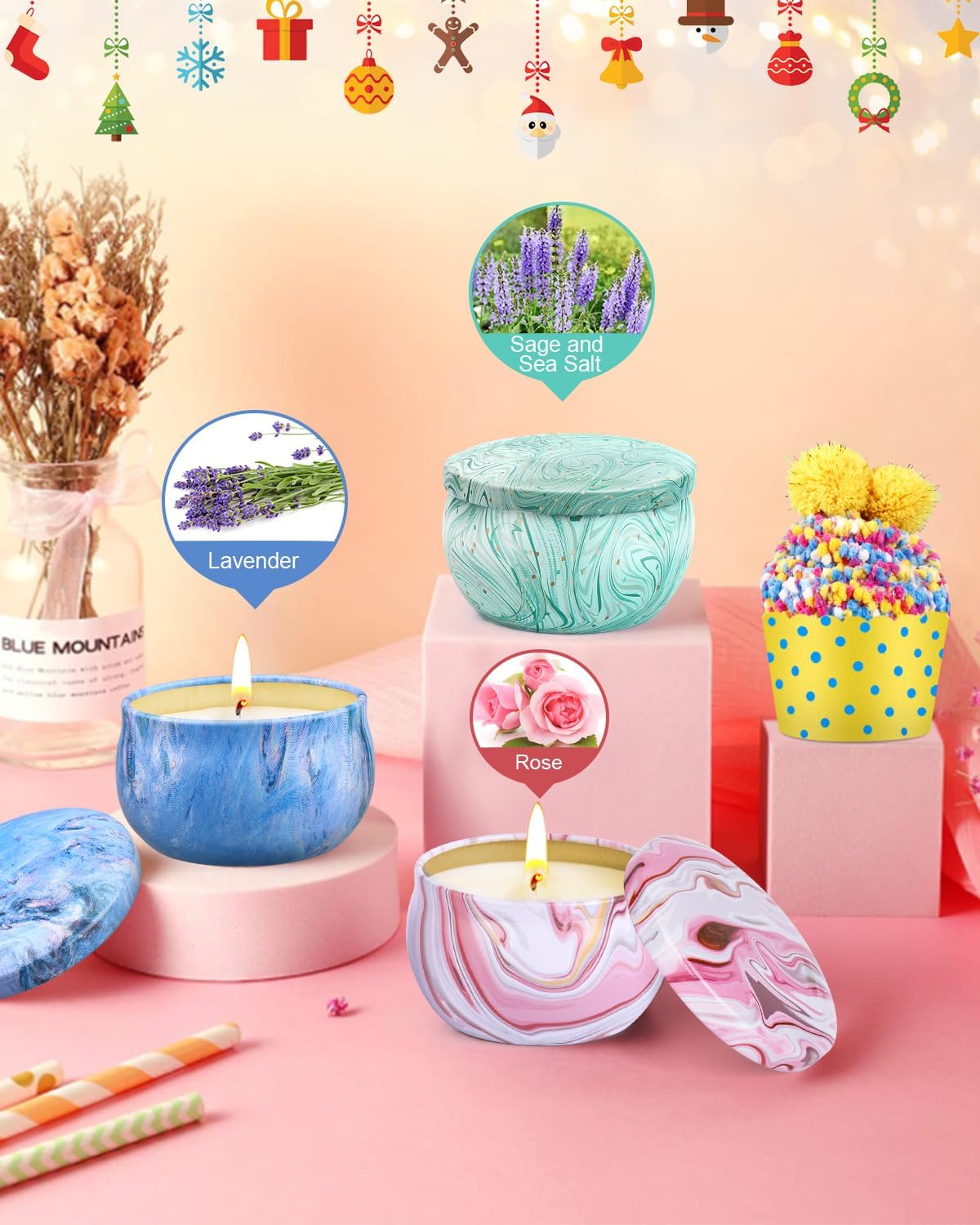 • Zapachy: Lawenda, Róża, Szałwia z solą morską + wzór cupcake